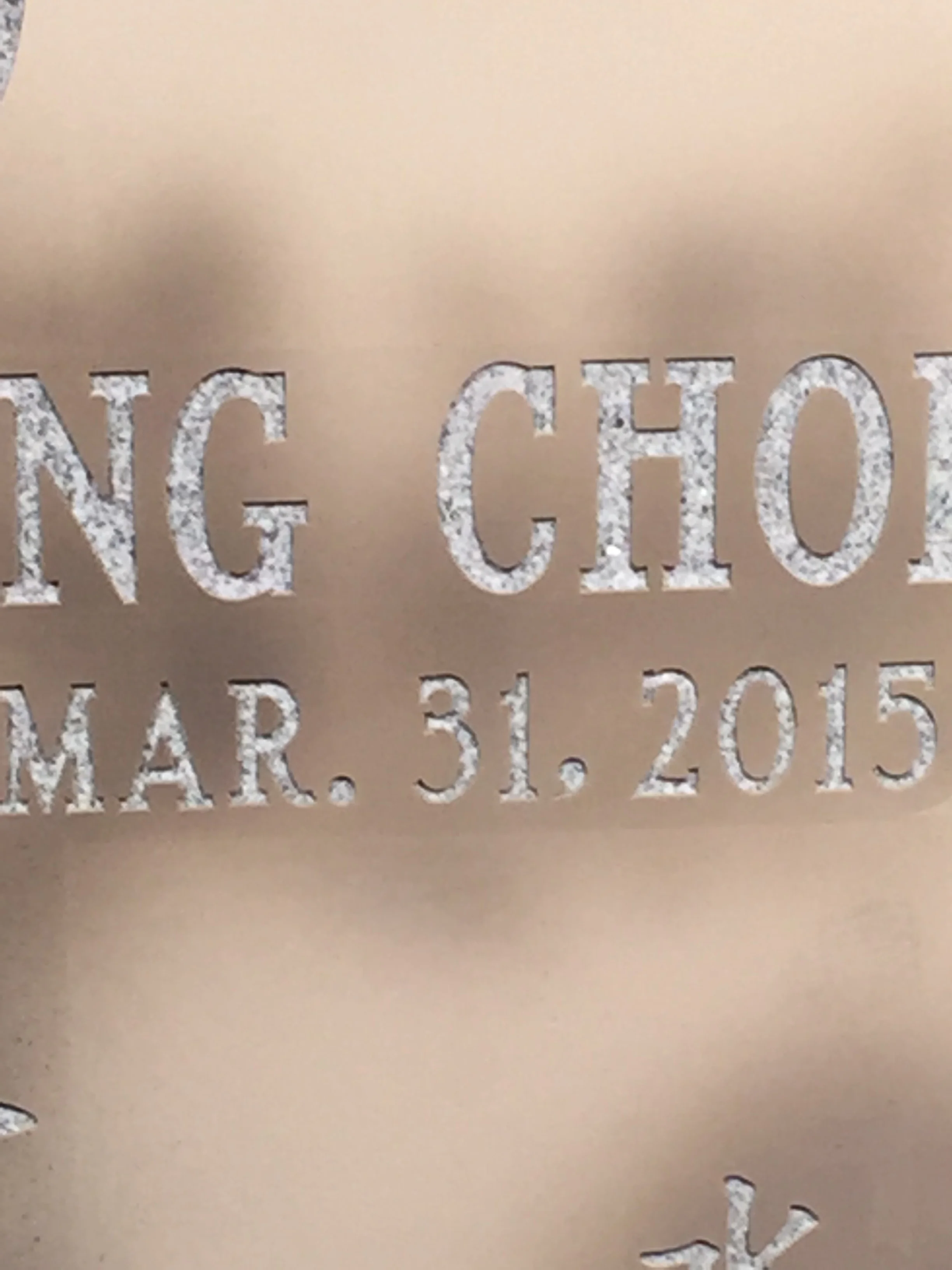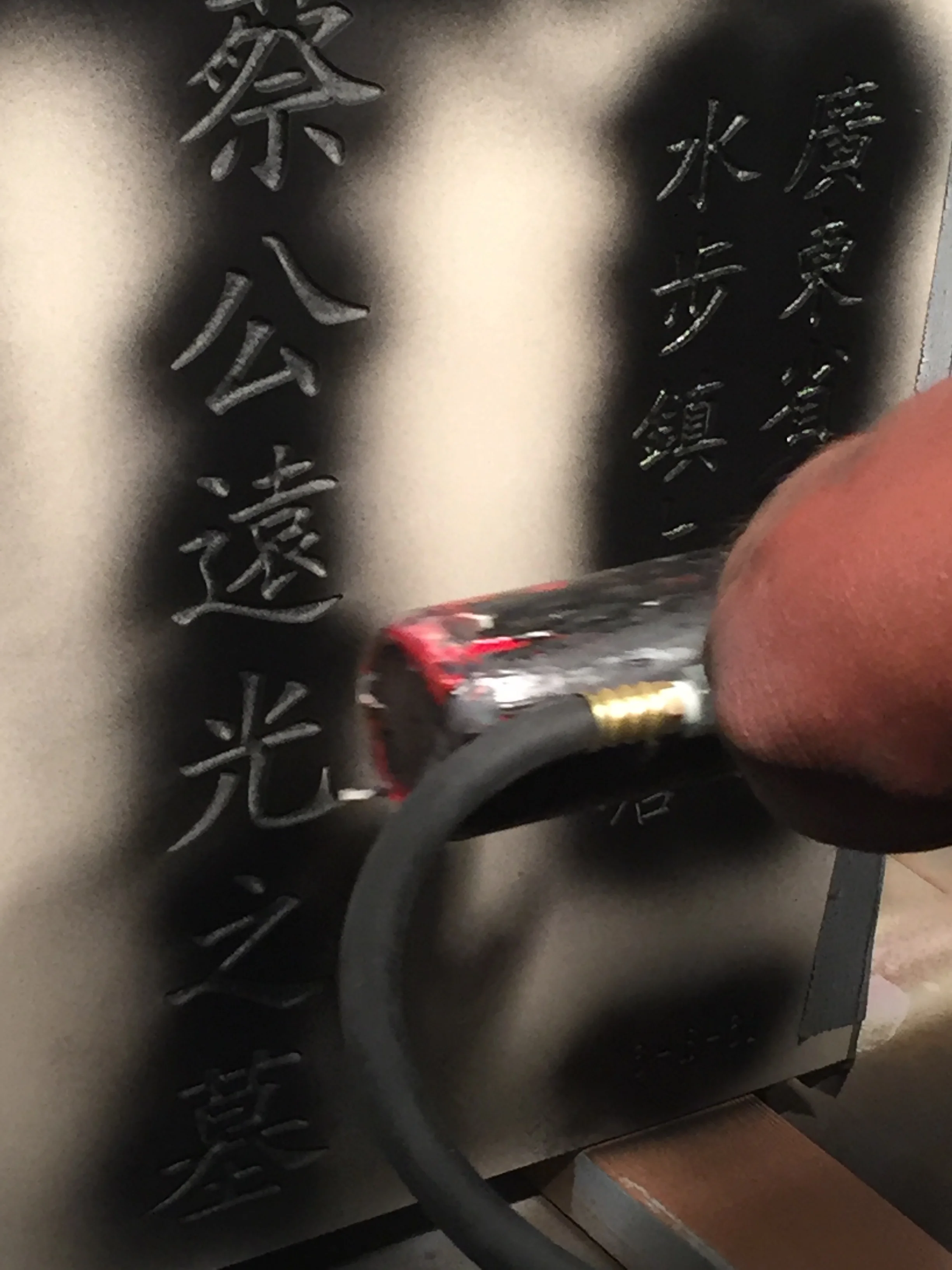 After engraving, we remove the stencil and thoroughly clean the head stone for installation.